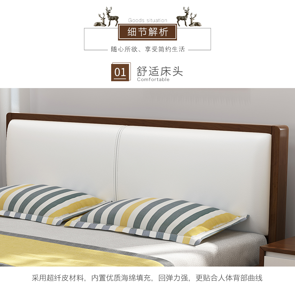 雅行ベド纯木ベケジット1.8 mダンベル寝室1.5 mモダンプは北欧风ベド+ココナッツ+1本のベトリング+1本のベトリング+1本のベトリング+1本のベトパッド1.8 m気圧构造です。