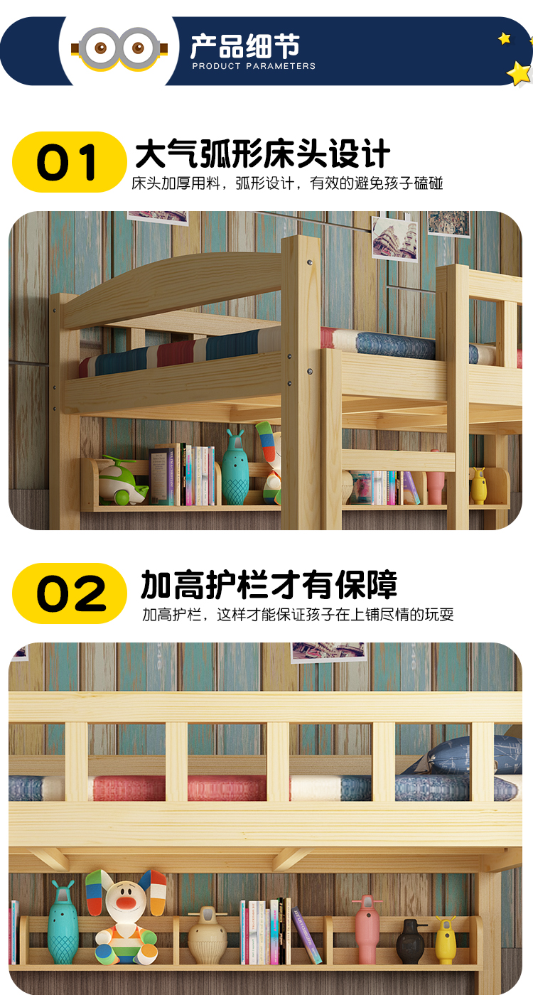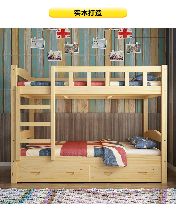 知恵星上段木ベド成人上段木ベド原木无漆上段ベド1500*2000