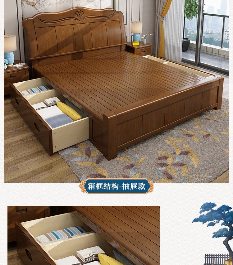 右森ベド純木ベト1.8 m 1.5 mダンベル中華風2 m 2.2 m大ベド寝室ダンベルベルベルを引き出しました。