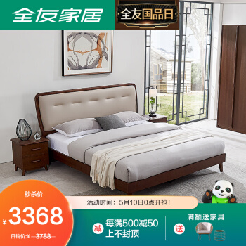 QUANU家间纯木ベケント新中国式ダンベル水曲柳したリンプベド寝室のセムス家具1215ベト+ベド天井*1+10536ベトパッド1800*2000