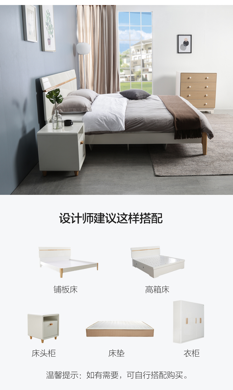 手の上の明珠の家のモダンの漆板の木ベトの寝室の白の明るい光の收纳纳纳纳纳纳纳纳纳纳纳ベネトの北欧风のシゲルの箱の家具の组み合わせです。×2+マット1800*2000を収集します。