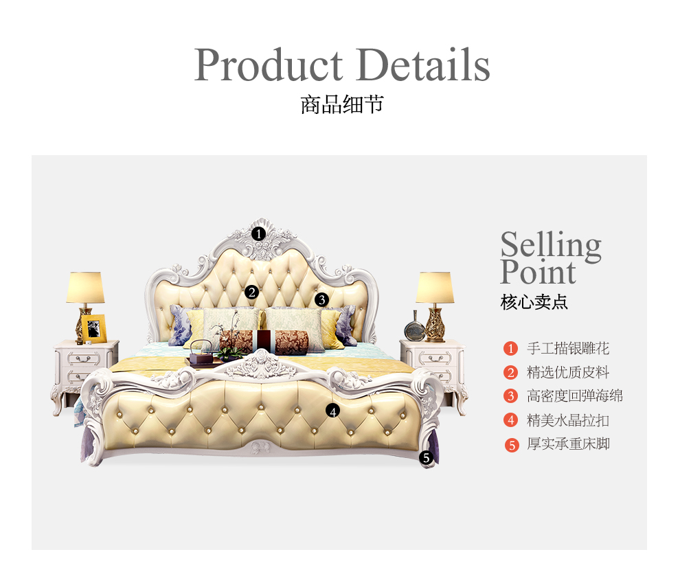 作曲家ベト洋风ベトの大ベト式1.8メトル接合ダンベル寝室家具ベド+ベト+ベト+ベト+ベトリング头台+ドレッサー台+ベンチー台+1800*2000