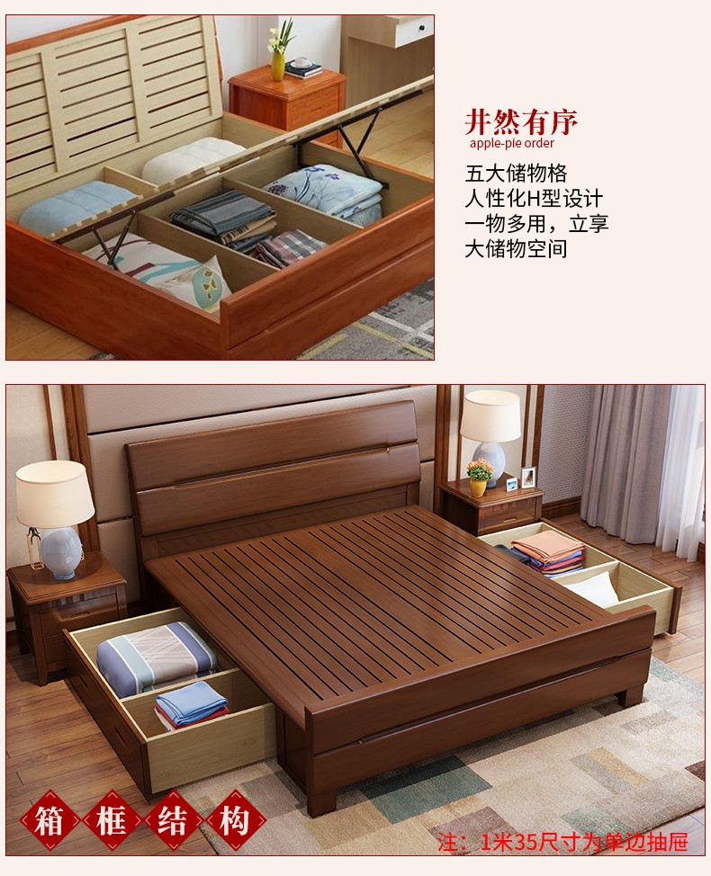 中華風純木ベト1.8 mドングリダブ1.5 mシングベド工場直営フレムベド
