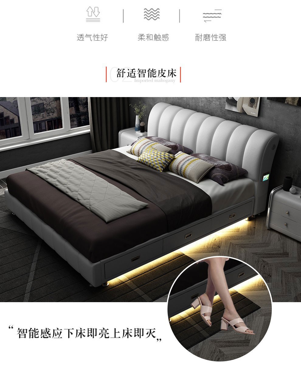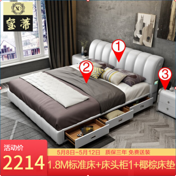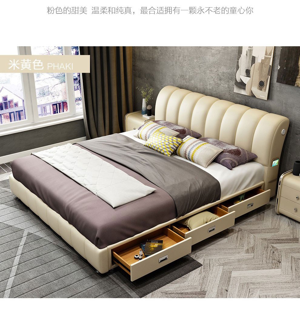 御璽蒂ベト本革ベドの大きさの部屋のダブルモーダ革制ベト1.8メトルビルビル动収纳ベド+1箱+ココナッツツブド