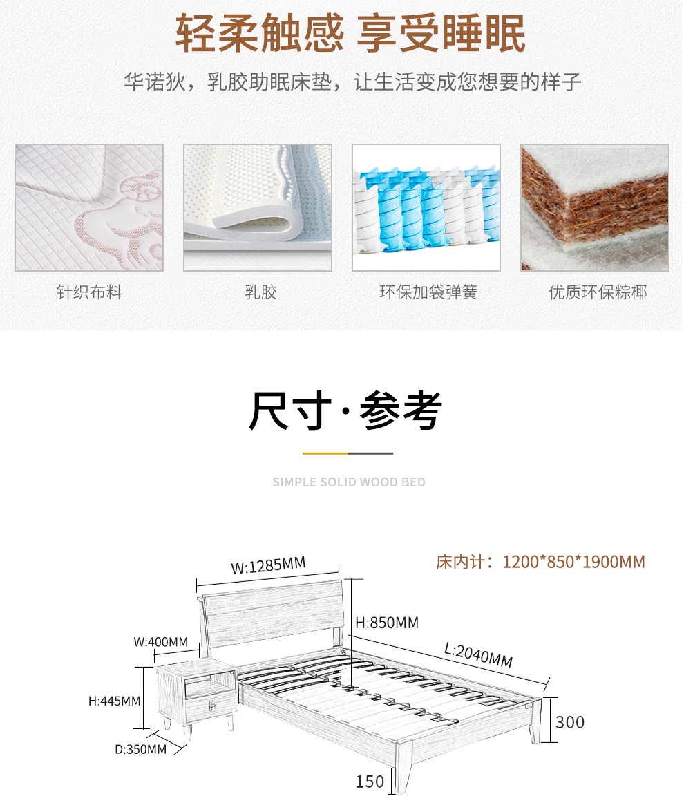 华诺デ1.2 m 1.5 m moダンシプロゴルベッド+22 cmラテックスの木ベケジット型家庭用简易寝室家具纯木ベト経済型胡桃色シゲル