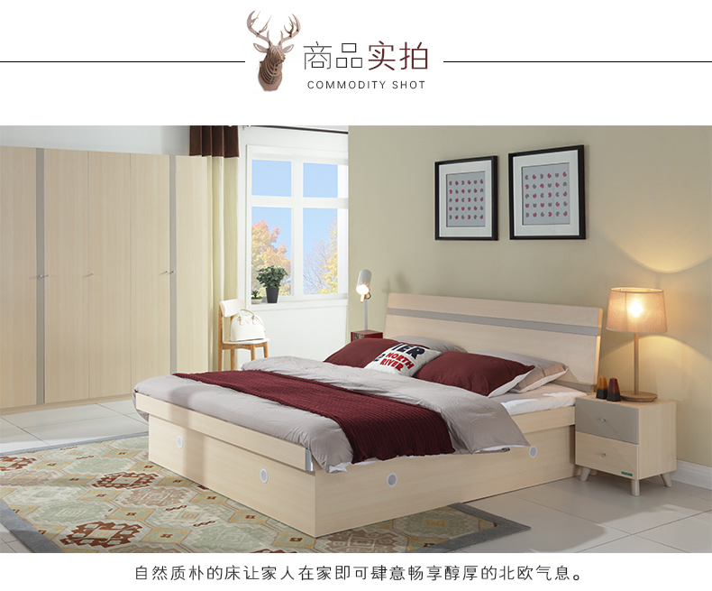 QUANU(QUANU)モダシンプレル寝室家具ベッド1035フレッド+ベッド*2+ベド1500*2000