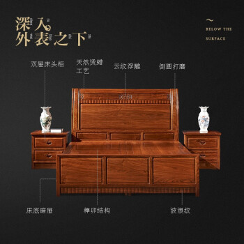 状元坊紅木家具アーフカナシ(学名:ハリネズミ紫檀)ベト純木中華風1.8 m大ベド純木大ベト純木大ベト純木大ベト純木大ベト中華風モデル古木ベケト1800*2000-3点セト