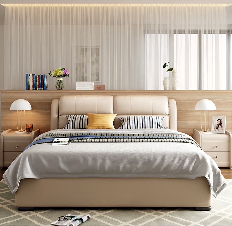 本革ベド1.8メトルC 013 1.8*2.0ミミ象歯白30-60日の出荷
