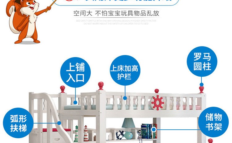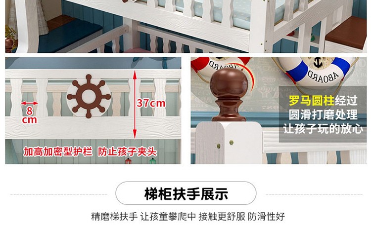 富博上下ベド純木二層ベド多機能高低ベド地中海二層ベド白ピンロック段屋台ベトド総長245下幅135上幅115