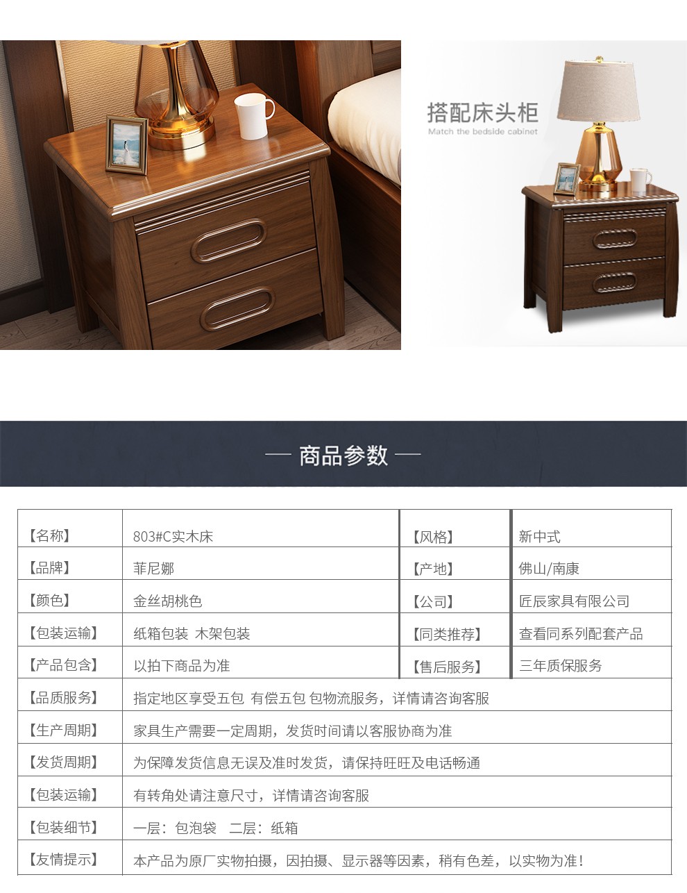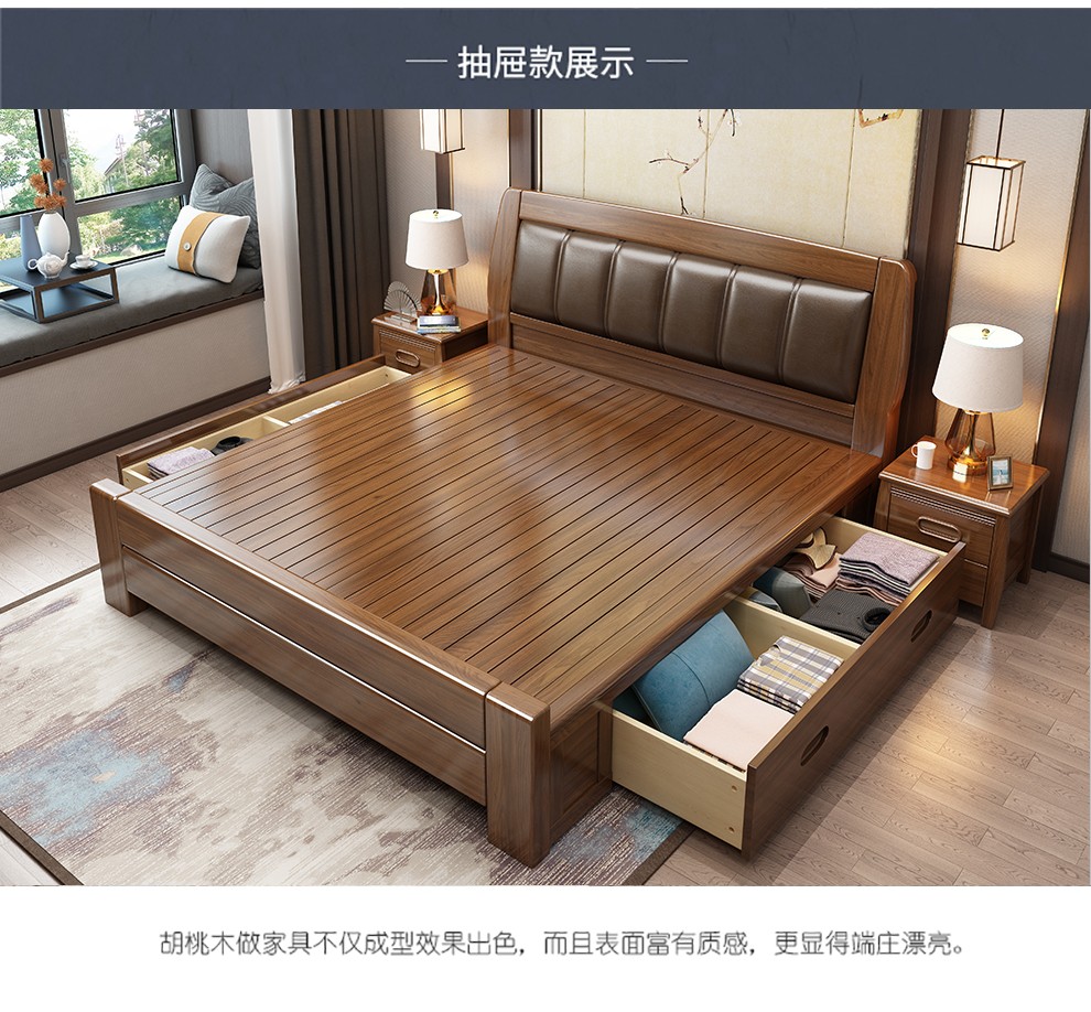 フニネットトベト1.8 m新中国式ダンベル引出したベド寝室家具クルミの木ベド1.8 m一般版