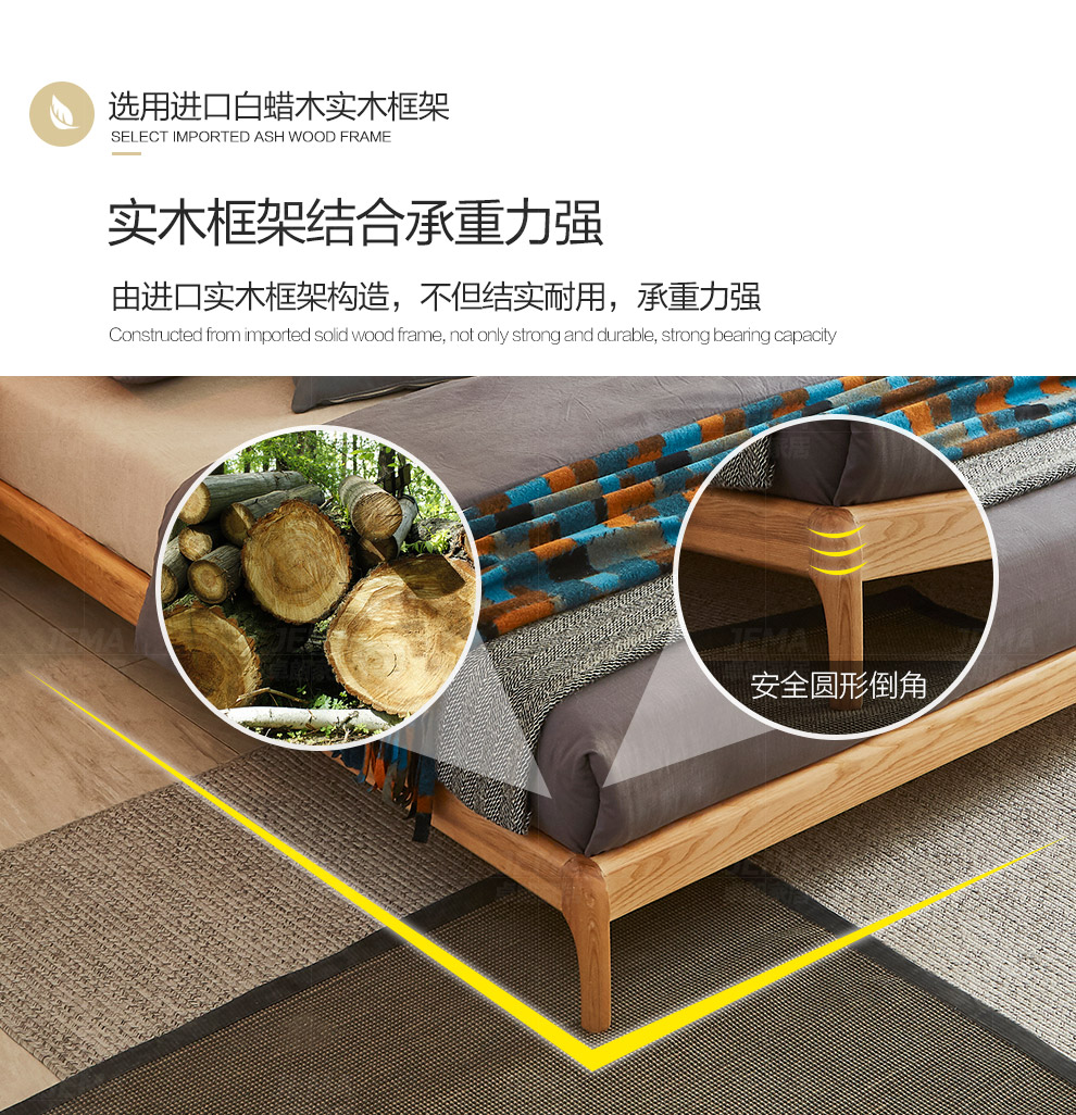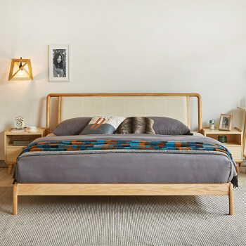 チャランベッド純木ベベル北欧風白蝋木純木ベムジット1.5 m 1.8 mダンベル寝室ダンベルダムダムダムダム新中国式大ベクレングー