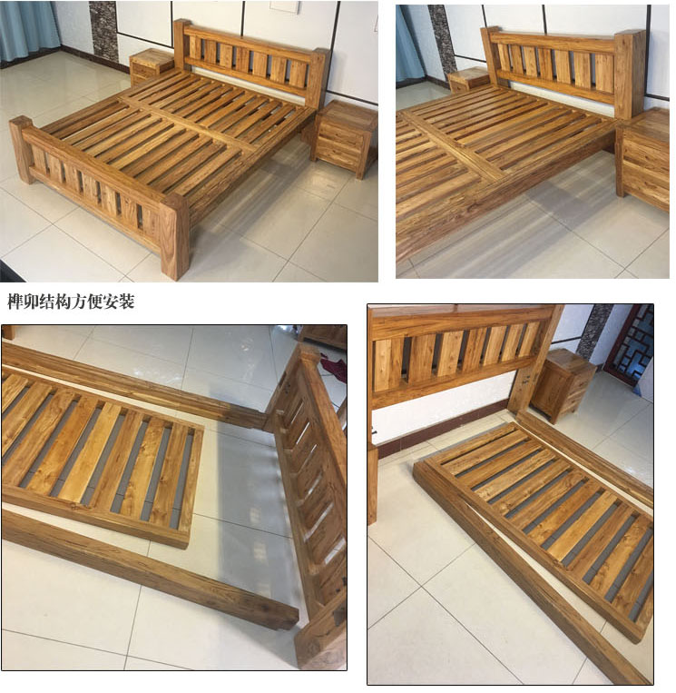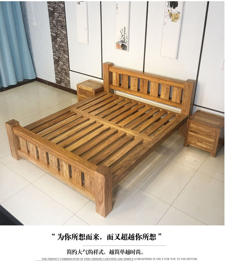 鲁班一木纯木ベト1.8 m新中国式ダブイル老楡木ほぞ卯构造纯木简易木ベド寝室家具1.8*2原木色