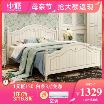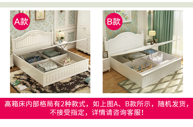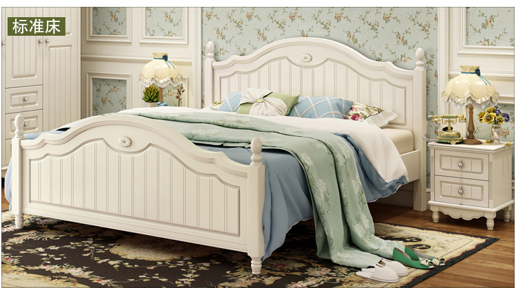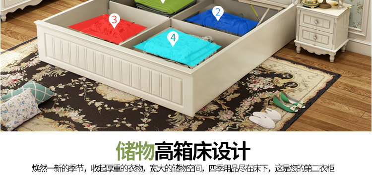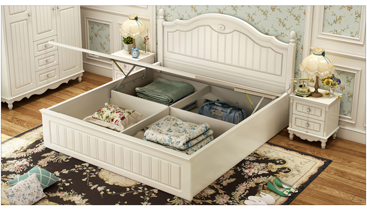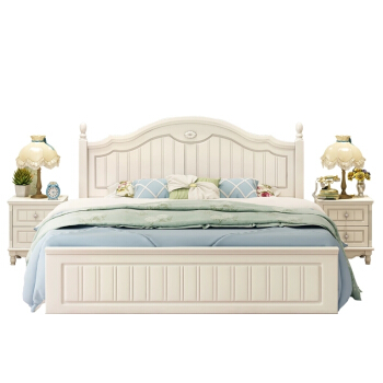 【価格保証通年】中派田園ベド韓式ベド寝室ダンベル収納納納納納納ベド象牙白1.8*2.0標準ベド