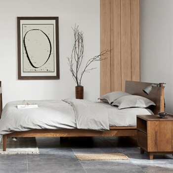 网易厳选纯木ベトリング音シリズ纯木ベトド寝室家具ペア大ベドモダンプレスト纯木ベト原木色1.5 mベトド
