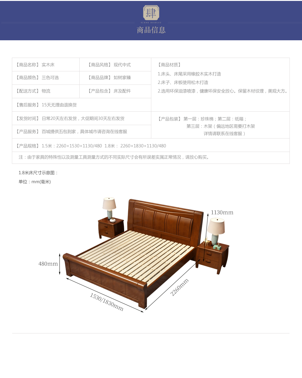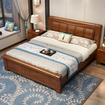 木家臻纯木ベベル1.8メトル1.5メトル中华风引出しし収纳ベト寝室家具胡桃色普通ベト1.8メトル