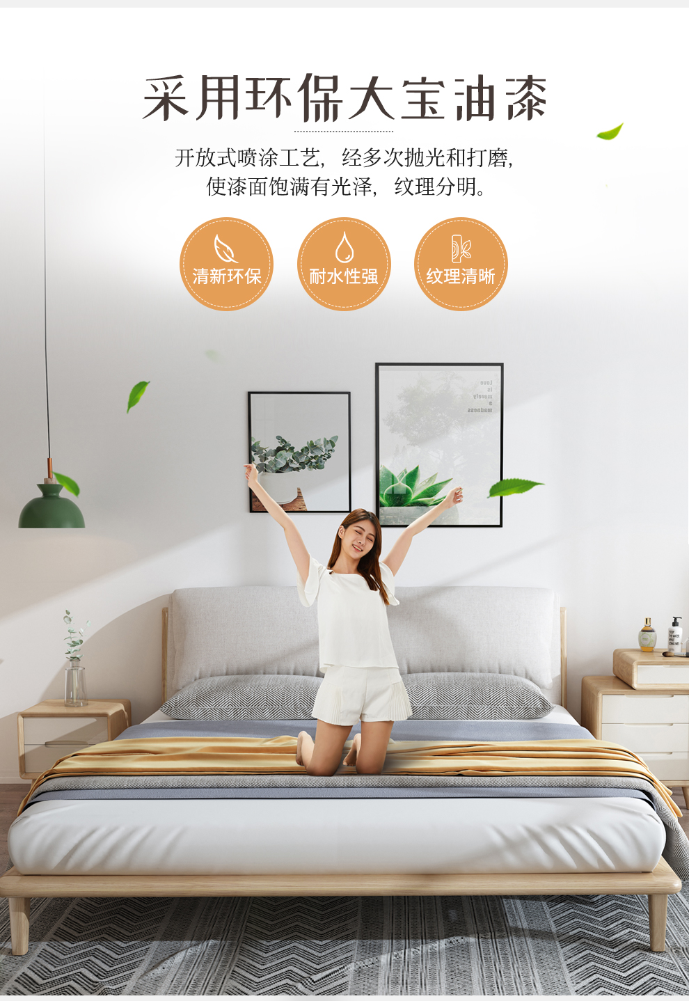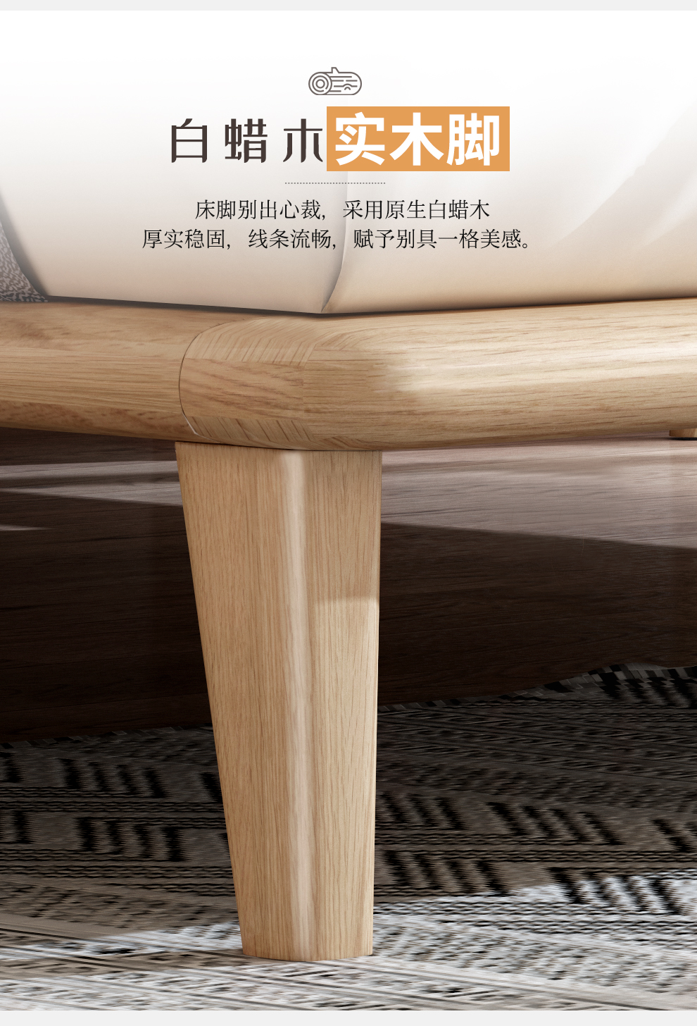 LYSAGUNベベル纯木ベド1.8メテルテルテルテルテルテルテルシンプロ北欧风寝室取りのほう、原木色ベド家具ベド1800*2000