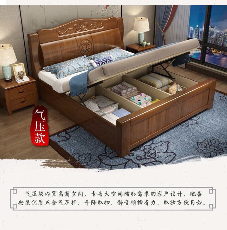 申请师ベド纯木ベト1.8 m二人结ダンベルジッド中华风1.5 m大ベト経済型寝室室収纳ベドガス纳构造1.5 Mベト+ベド头箱*2
