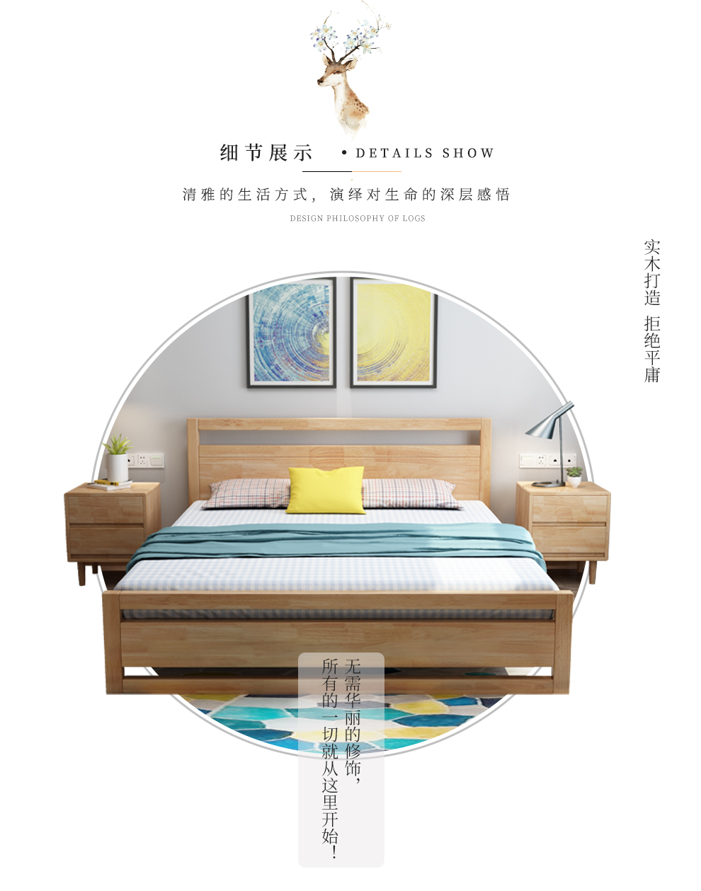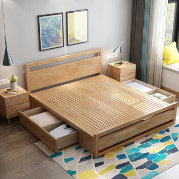 慧森絵色モダシンプレル純木ベド北欧風純木ベケジット1.8メトルベアトム大ベト1.5メトル木製ベト収納納納納庫ベト2000 t