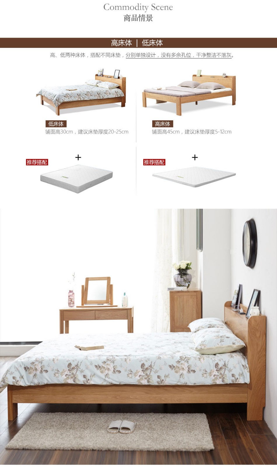 日本式纯木ベト1.8メトル1.5北欧风モダシンプ置物ベト原木色ダンベル寝室家具原木色高店舗1500*2000 mm
