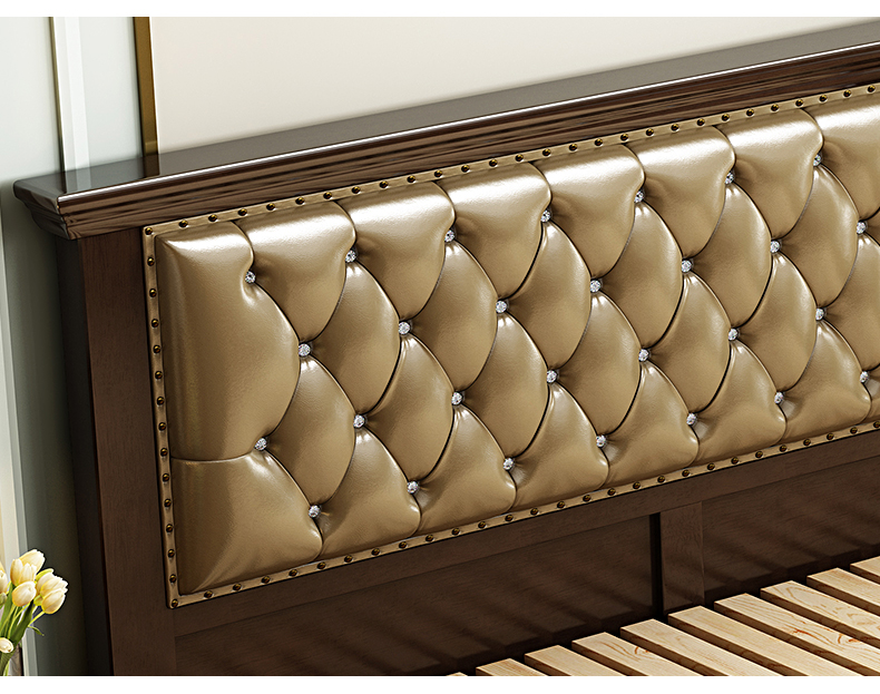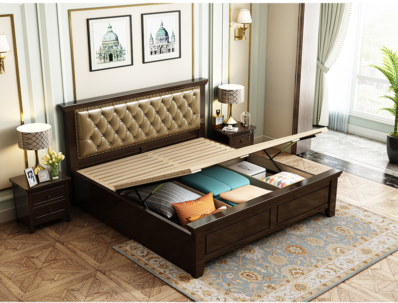 ポリベル純木ベド1.8 mダンベル1.5 mアマレオル純木帯した大ベド寝室シンプ家具収納納納納納深胡桃色
