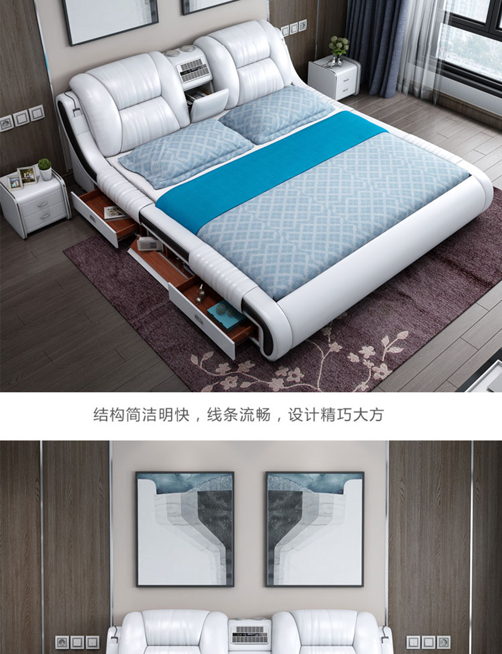 柚巣革制ベト本革ベドの新型知能マルサ音响空気浄化器ダブ多机能1.8メテルの寝室に引き出します。