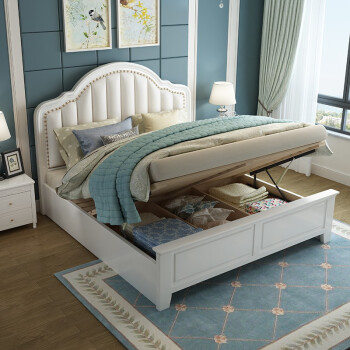 シンプロモル纯木ベト白1.8メトル洋风ベド寝室ダンベル1.5 mの简单なお姫様ベド収纳ベド2メトル2.2メトルの大ベド纯木单构造