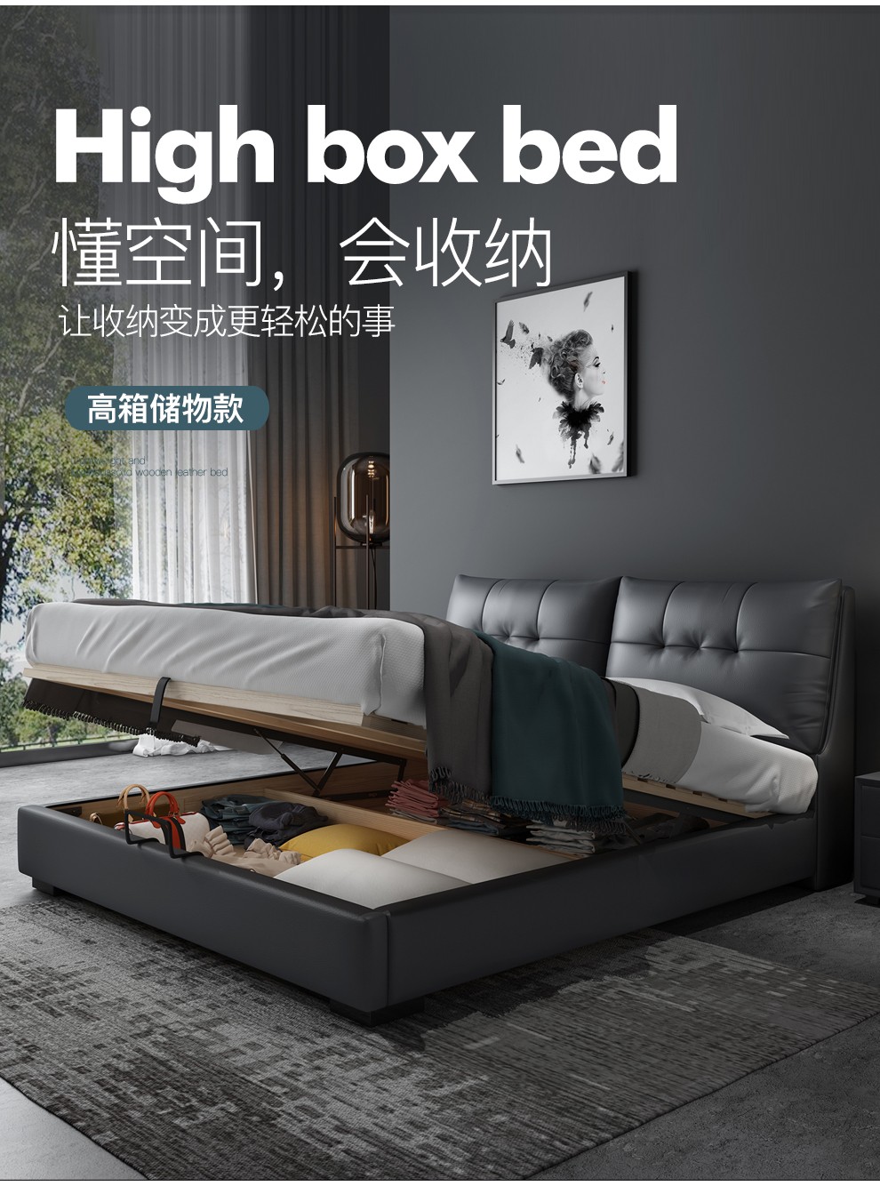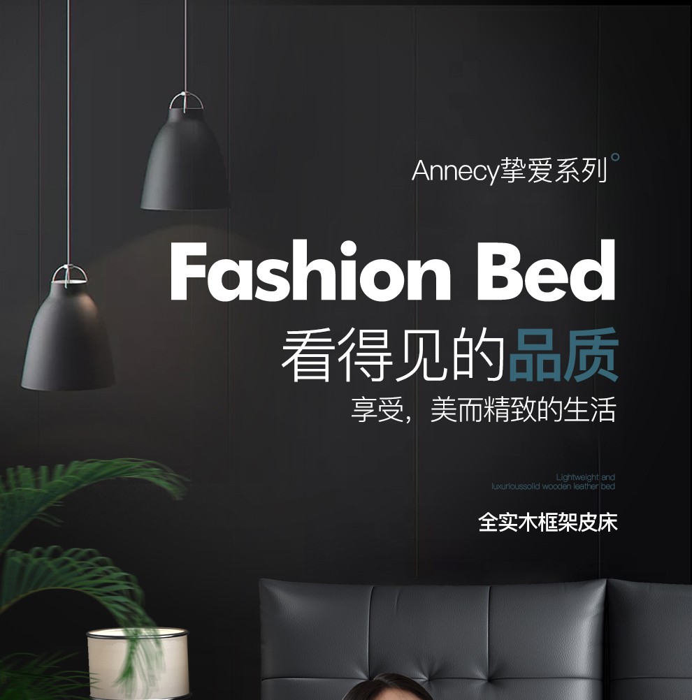 森林季节(SENLINE)ベッド北欧风革制ベト1.8メトルの大きさ戸型ダンベル本革ベト【フインドラン松纯木枠入力+质保生涯フレム】