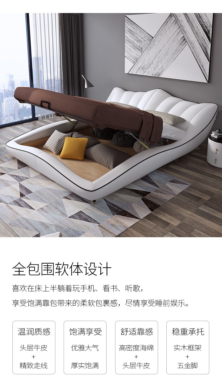 凱善ベド北欧風革制ベト本革ベトド寝室ダンベル9213本革ベド1.8 mレザニアベド小戸型ダンベル