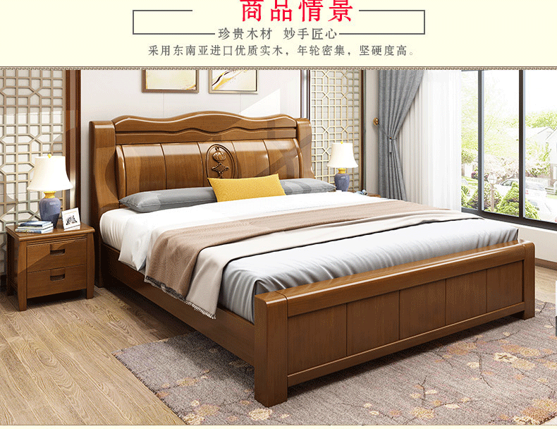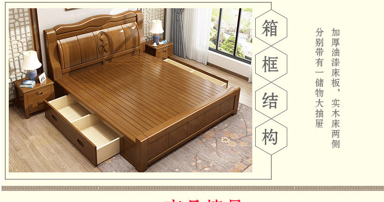 右森ベド純木ベケジット1.8 m 1.5 mダンベル中華風2 m 2.2 m大ベド寝室室室ダンベルベナー引き出したベド1.8*2.0 mフレム構造【色備考】シングベド