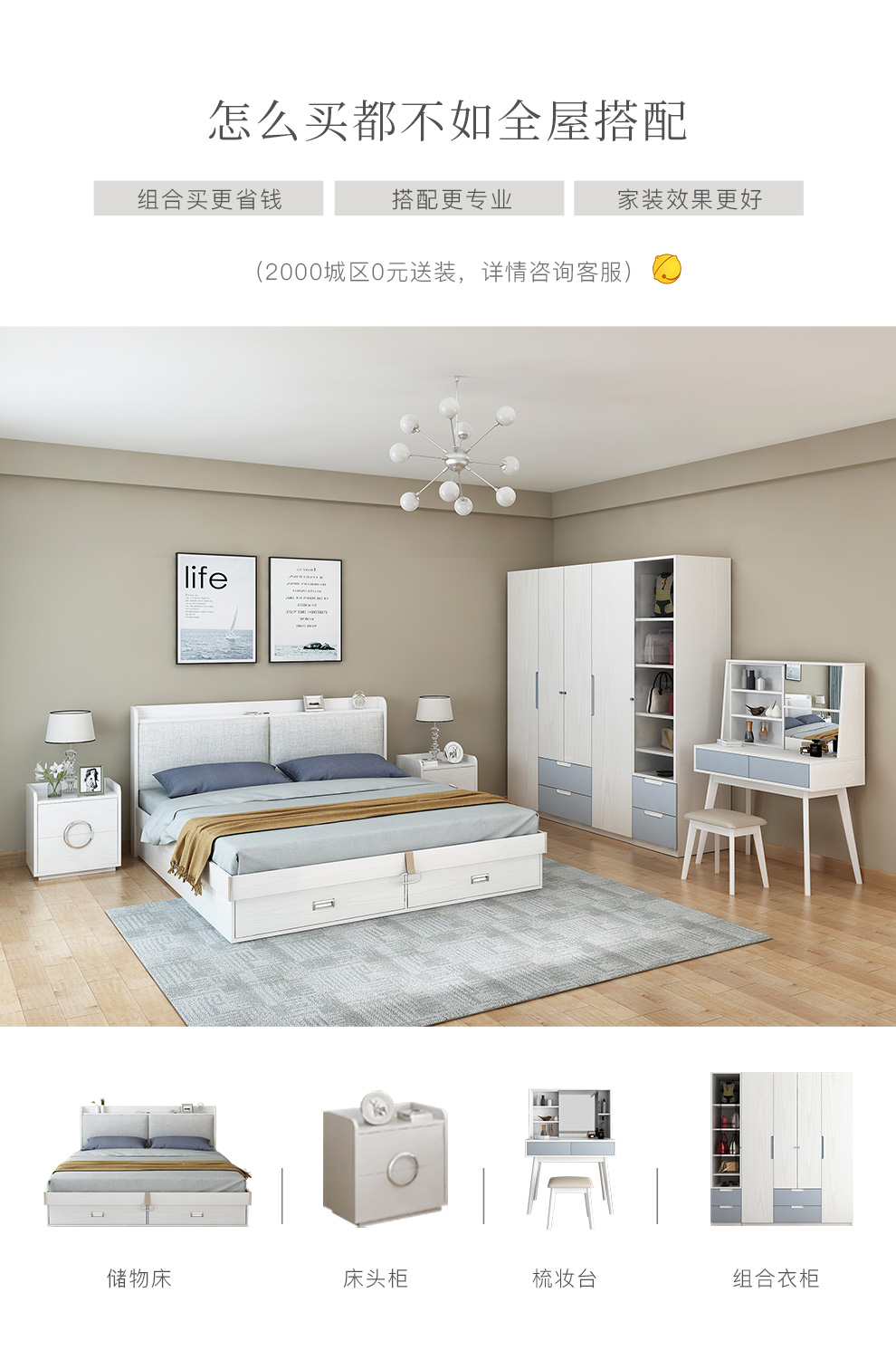 【現物】ソフティ北欧風シンプペアノ収納納納納納納納納本ダンベル寝室家具收納ベド+ベド頭箱*1+23 cmベトパッド1.5*2メトルトル