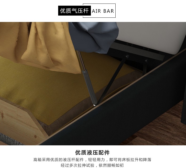 カムン純木フレム北欧風フルーベック寝室ガス収納ベド1.8*2.0 m-裸ベド