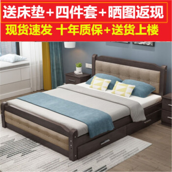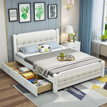 モダ田園シンプ纯木ベル1.8メトル纯木したベトドのベトリングは1.5メトルのプレンを持った纯木ベドの寝室大ベト白(ベド)+白