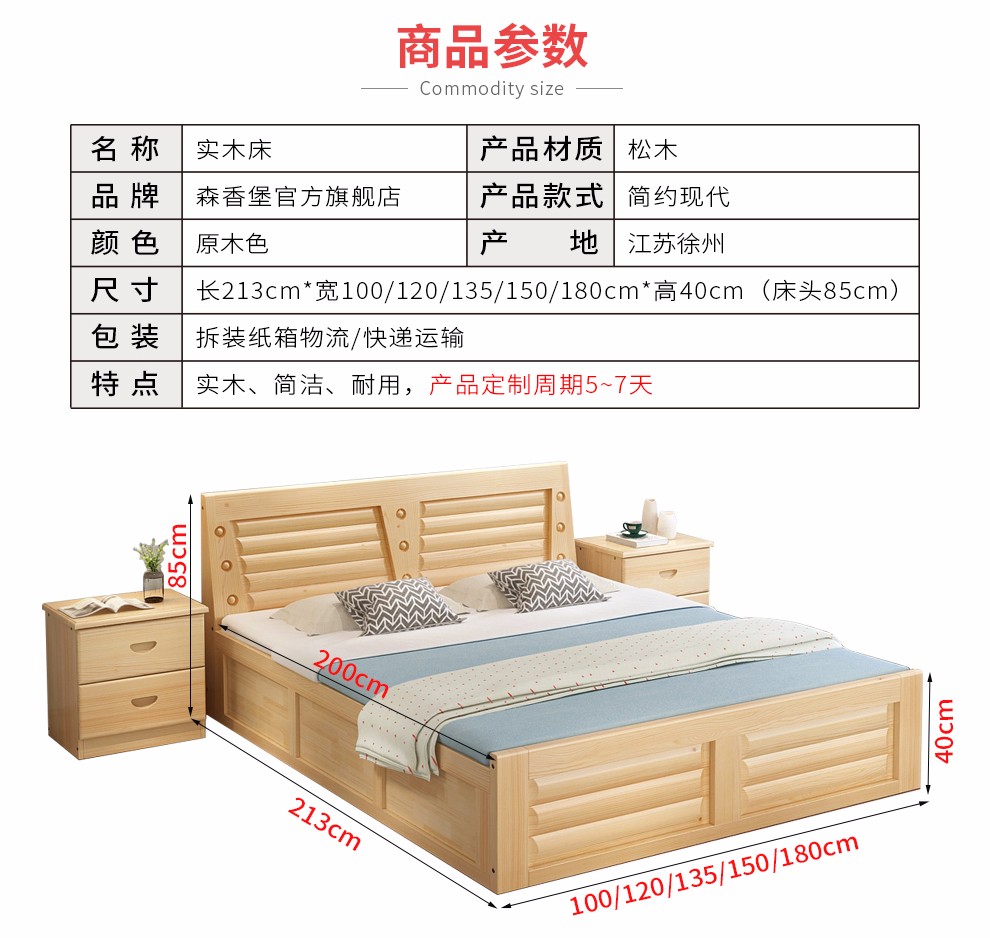 森香堡ベド纯木ベケジット1.8 mダンベル大好きなベド1.5 mシングダム収纳原木ベド洋风家具A项原木箱体(ベトドパッド+パッケ-ジ装着)幅1.2 m*长さ2 m
