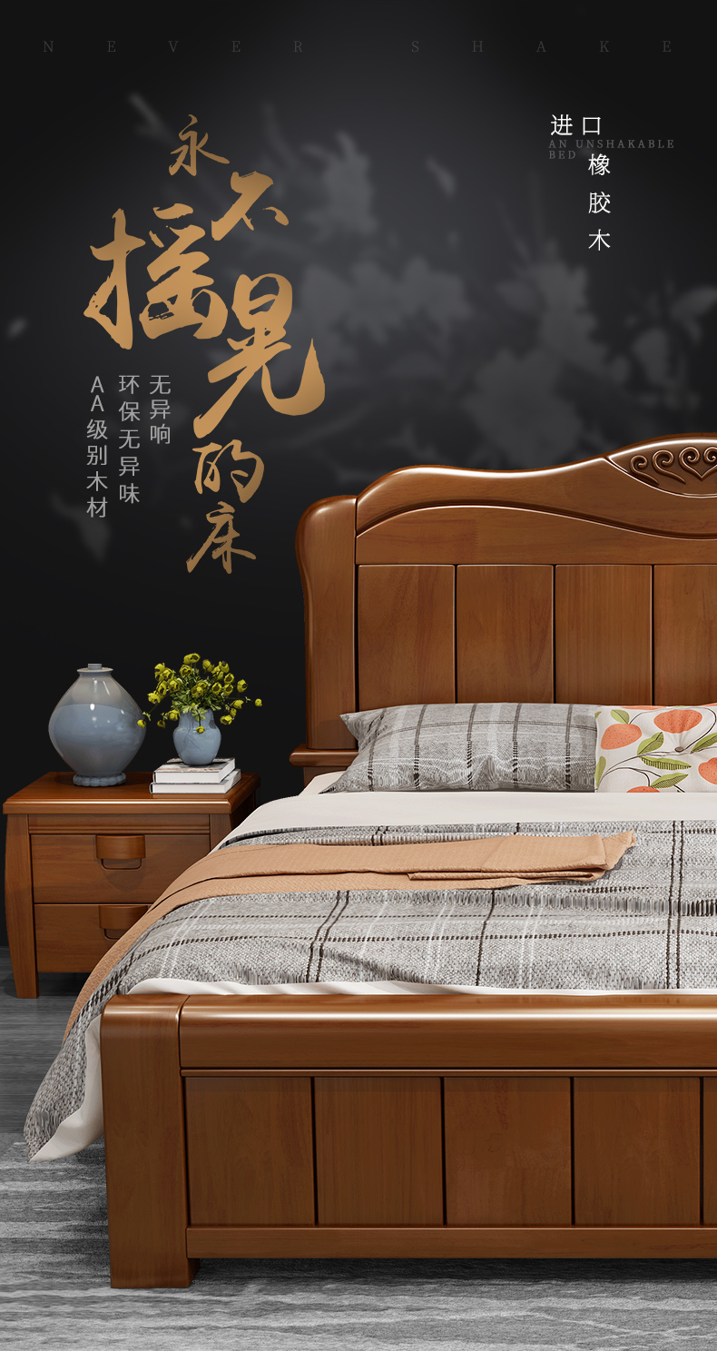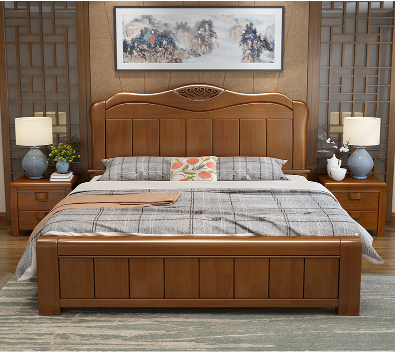ディープメート純木ベト中華風ダンシンプレル北欧風新中国式純木寝室逸品家具ダンベル1.8 m 1.5 mダンベル胡桃色純木ベド1800 mm*2000 mmブラケト構造