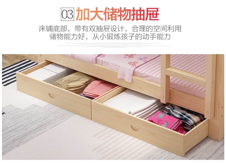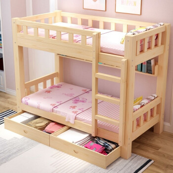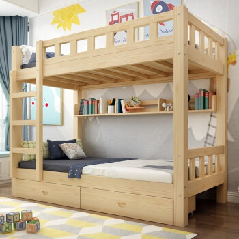 希木屿ベド二阶建って、ベド纯木高低ベド寮の上下段ベド子供ベド母子ベド900*1900原木无漆ベド+本棚+ダブル引出しました。