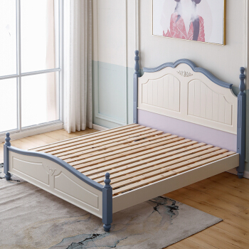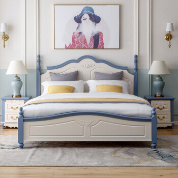 瀾烦世家地中海純木ベド田園寝室家具北欧風ダブ1.5メトル1.8メトル収納納納納納納納納納納納庫象牙白+清新青排骨格(1500 mm*2000 mm)