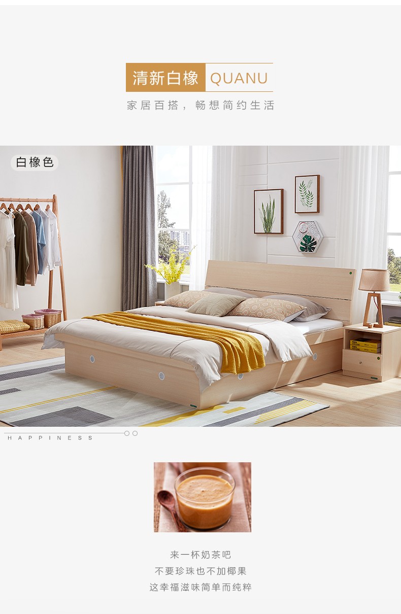 QUANUホムム家具モダシンプレレル木目大本ケムス10623收纳ケ-ス10623收纳ケ-ド+ベド箱*1+10620ベト1500*2000