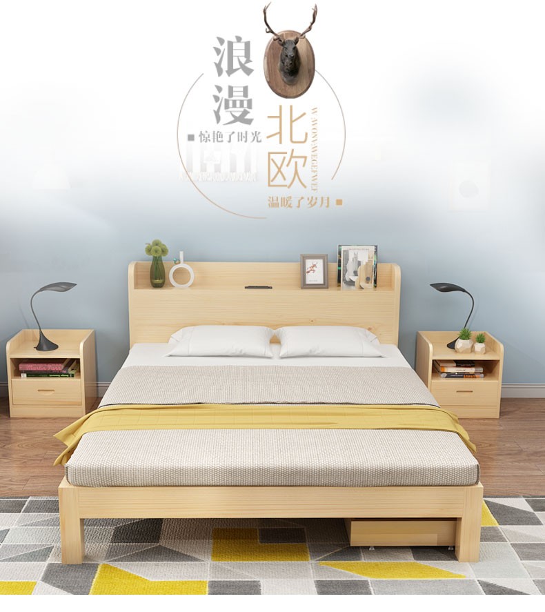 ここの時、ベッドフレム純木ベトド日本式1.8 m松木ベト1.5枚の収納ベド1.2 m原木色ダンベル寝室家具原木無漆ベド1.8 m*2.0 m