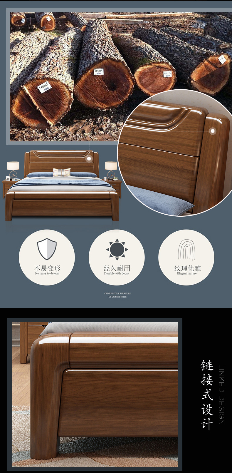 カルロス森ベト純木ベケジット1.5 m中華風純木ベケジット収納家具ダンベルの木純木ベド1.8 mダンベル1.5 m中華風純木ベケット
