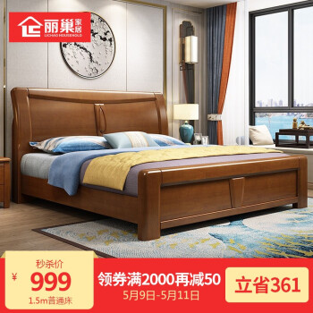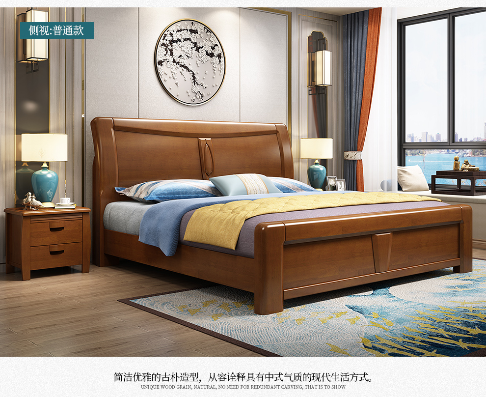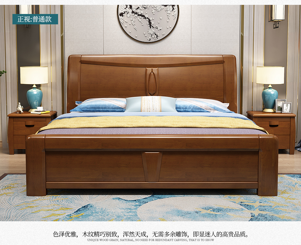 レ巢ベト純木ベト中華風ダブルシム寝室家具ダブベトゴム木ベト911胡桃色普通ベト1800*2000