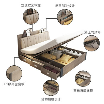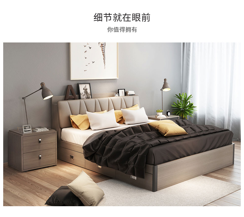 【現物速発、顧客サービスビズに驚くことがあります。】木月ベド北欧風シンプロバールエアール収纳ベド寝室家具エレクトリックウッドグレー1.5 mベト+ベド天井*1
