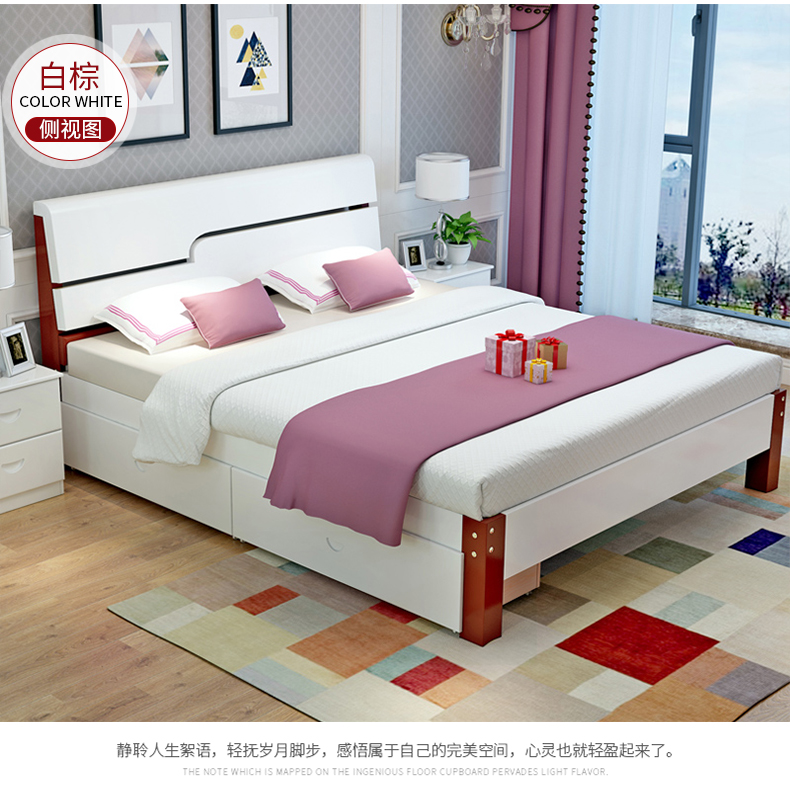 纯木ベト1.5 m 1.8 mダブ松木ベトリングセト洋风ベド白引きた1000 mm*2000 mmベトナ