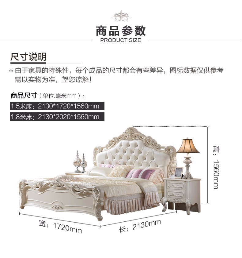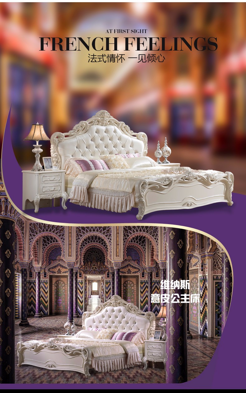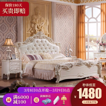 风哥华ベト家具洋风ベド纯木姫ベド洋风ダンベル1.5.1.8メトル寝室组合收纳ベベルノ皮(雕花ベト尾)1.5*2メトルトルトル
