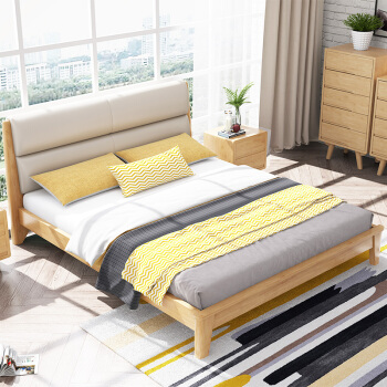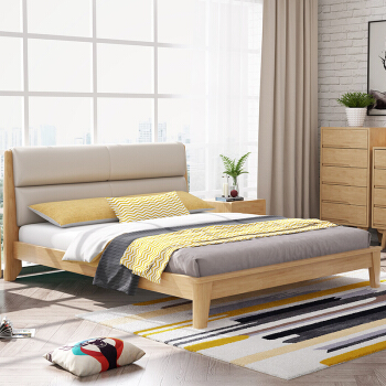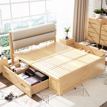 Rufeteベケン北欧風モダベト純木ベト1.5 m 1.8 m純木ペアダベル寝室家具666原木色1500*2000引き出しベド