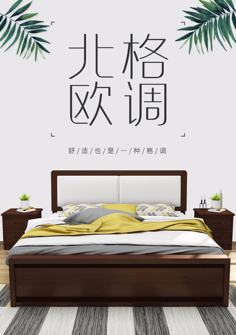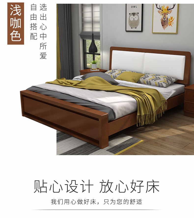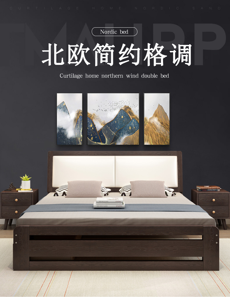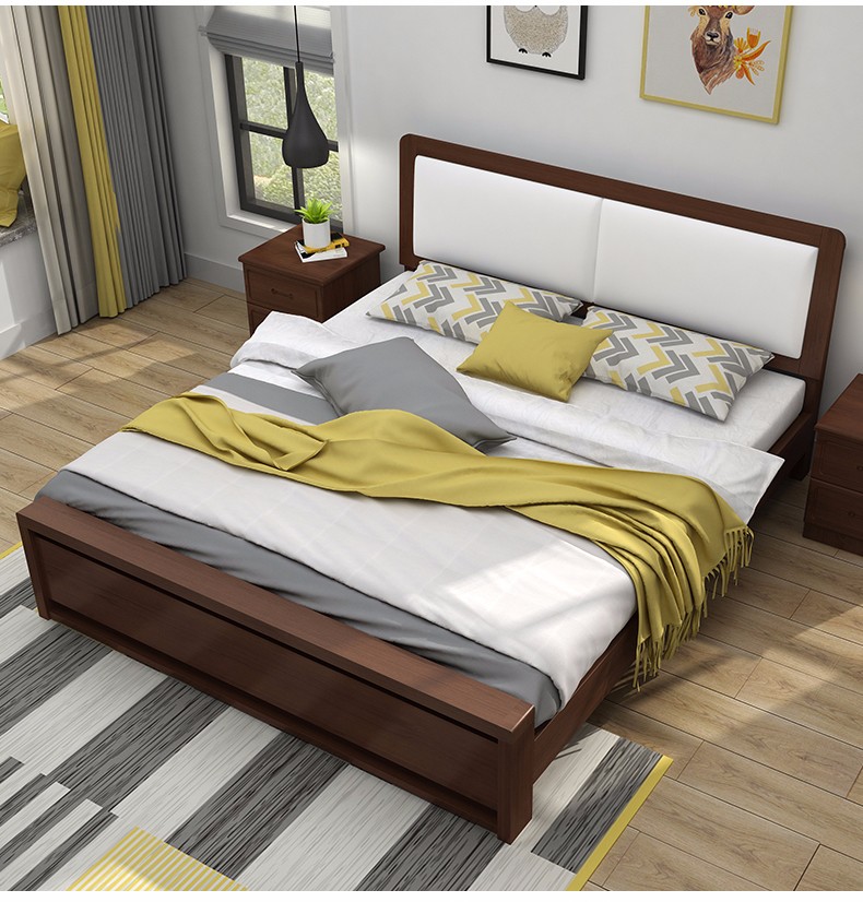 天夢の夜ベド純木日本式1.5/1.8メトル純正木ベド松木黒胡桃色シダ寝室ダンベルベトド(原木)