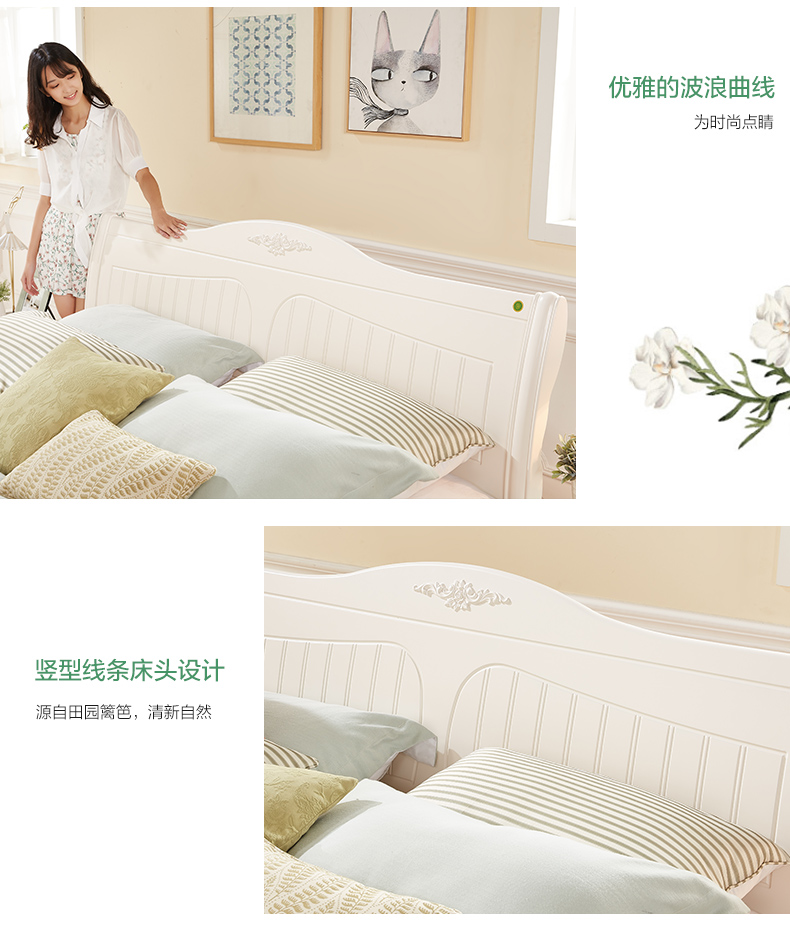QUANU(QUANU)ダブ1.5 m寝室室1.8 m板式ベド韩式田园寝室ベドベルベルベルベルベトトトベトトトトトト