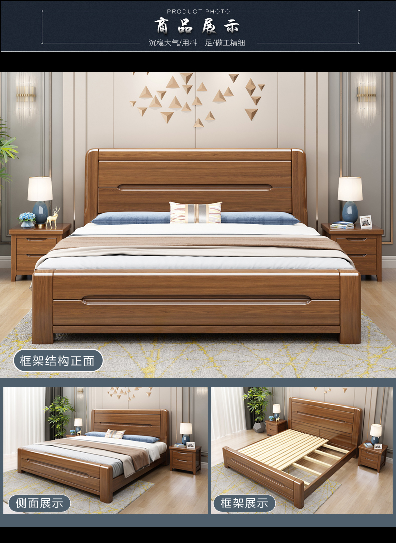 百万凡ベド纯木ベベル寝室1.8 m 1.5 mコルミの木ベトモダプロ新中国式ダンベルの木ベト1800*2000 mmフレッドド