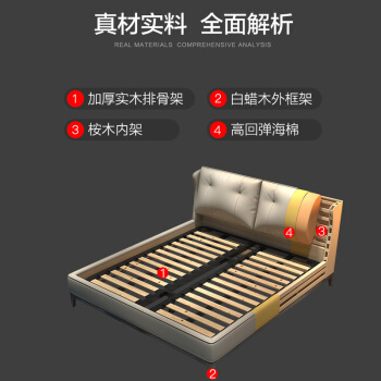ルテナ北欧风ベトド纯木シムプロモーション1.8 m 1.5ダンベル本革寝室ベド家具ベド1800*2000