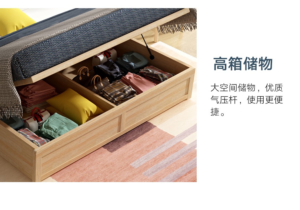 锦巢ベト北欧风纯木ベト1.5メトシド1.8メトルダム大ベド収纳引寝室ベドXC-308シンゲルベド(原木色)1500*2000标准ベド