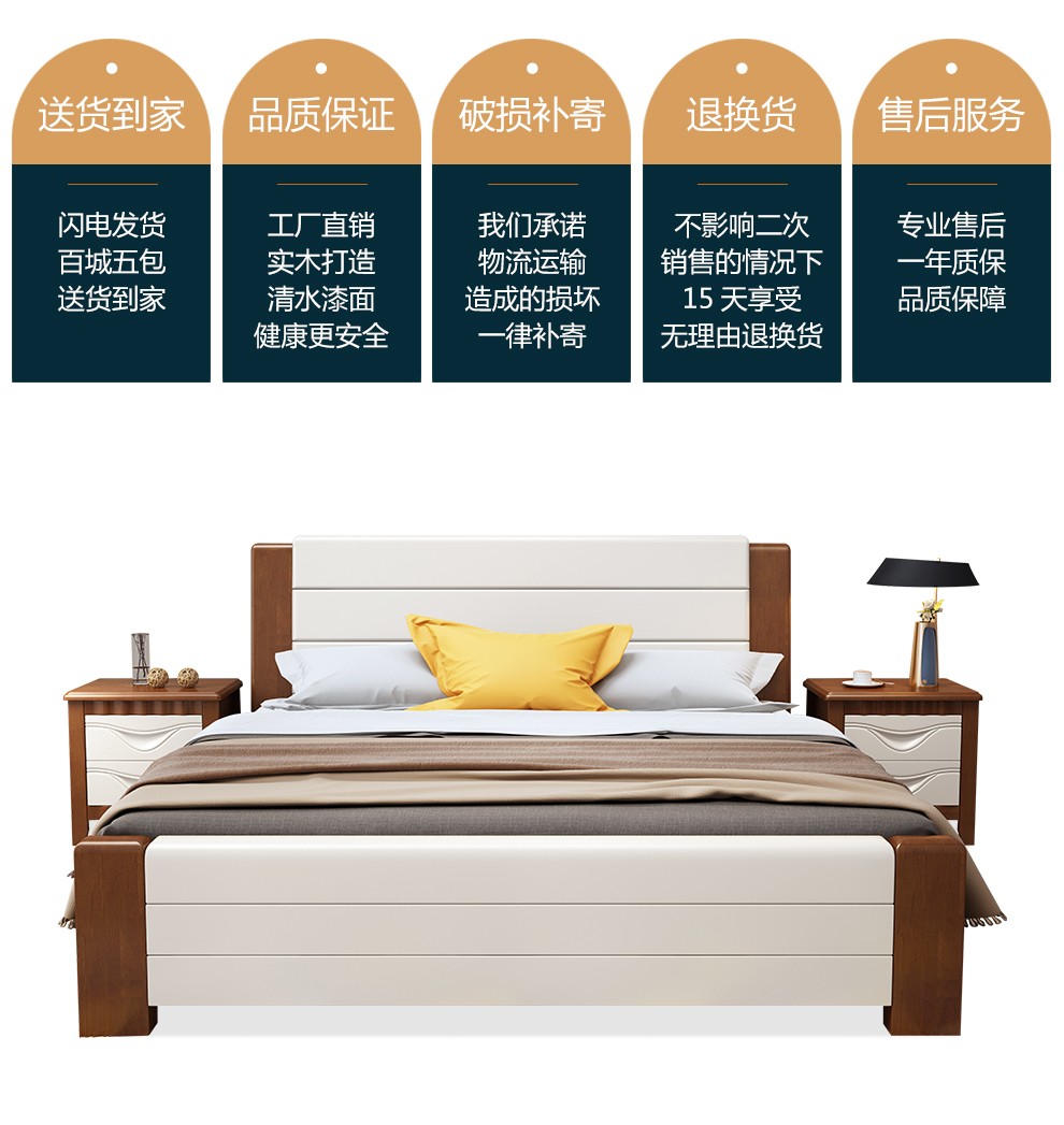 上林春ベト純木ベケジット1.5 m 1.8 mダンベルホワイト北欧風モダン寝室セト家具白ベト1000*2000標準ベト